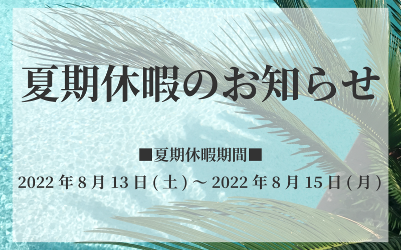 2022年7月27日 / 最終更新日時 : 2023年4月21日 株式会社ネクサス お知らせ 2022年 夏期休業のお知らせ 平素は格別のお引き立てを賜り、厚く御礼申し上げます。 弊社では、誠に勝手ながら下記日程を夏期休暇とさせていただきます。 ■夏期休業期間 2022年8月13日(土) ~ 2022年8月15日(月) 休業期間中にいただいたお […]